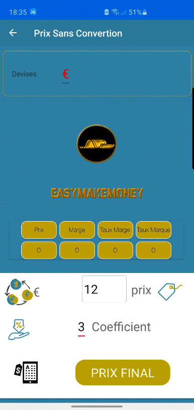 Toutes ces données réunies dans une seule application, EASYMAKEMONEY sera très vite votre partenaire indispensable.